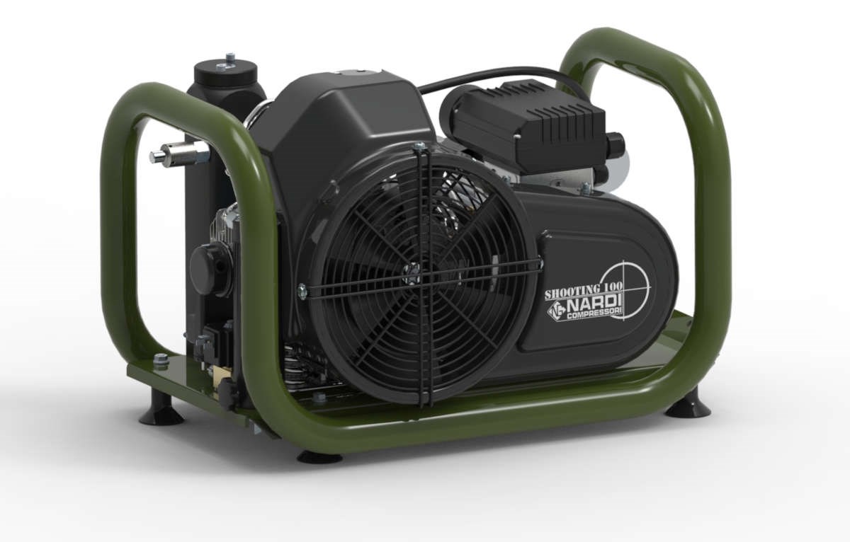La linea SHOOTING NARDI offre dei compressori ad alta pressione pensati appositamente per il settore PAINTBALL e PCP. I modelli di questa gamma sono progettati e studiati per offrire all’utente la soluzione migliore in termini di qualità e sicurezza e sono personalizzabili secondo le esigenze dell’operatore, infatti NARDI mette a disposizione numerosi optional che possono rendere ancora più semplice ed intuitivo l’utilizzo della macchina stessa. Il modello SHOOTING P100 è disponibile nelle versioni con motore monofase e trifase, con una capacità di 100 l/min.